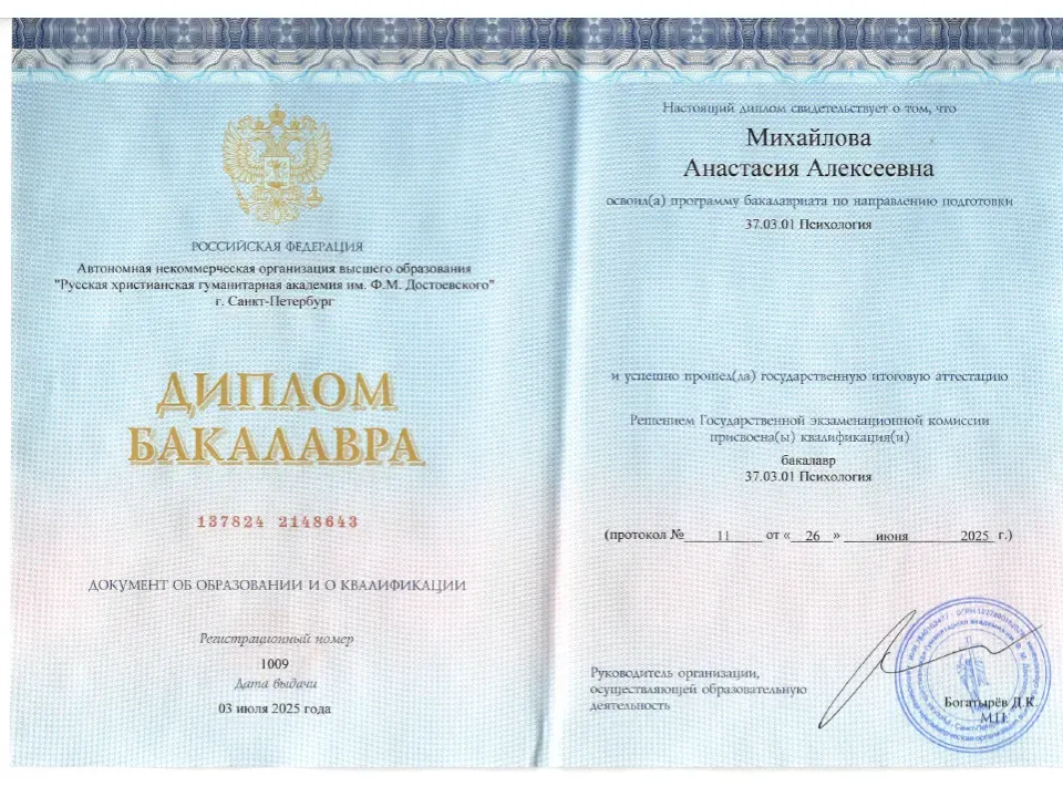 Бакалавр по направлению «37.03.01 Психология»