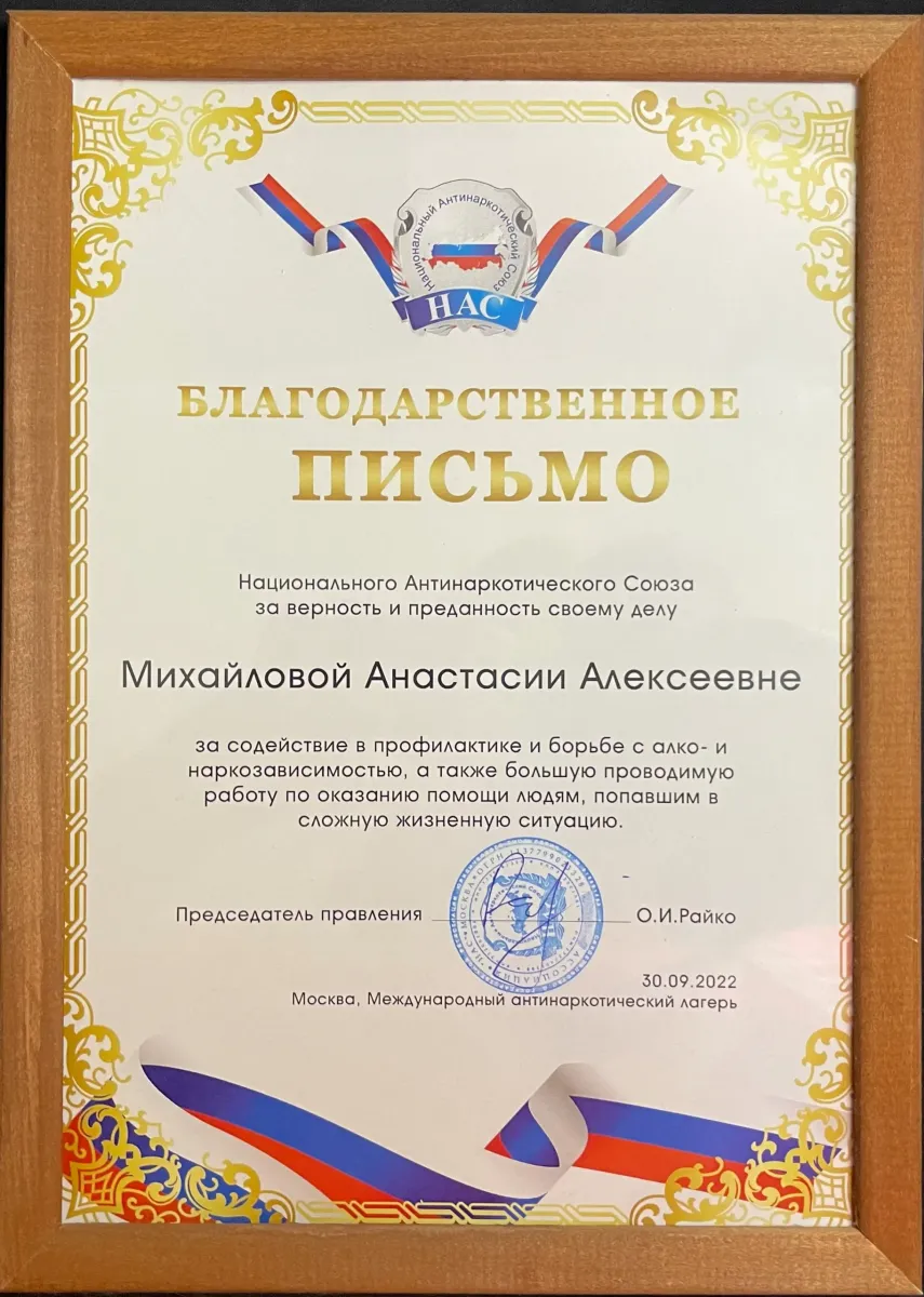 - Опыт в реабилитации — понимание специфики работы с зависимостями
