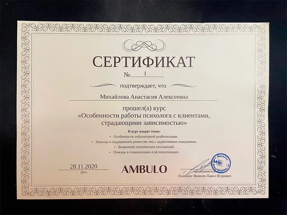 - Курс П.И. Яковлева — «Особенности работы психолога с клиентами, страдающими зависимостью»